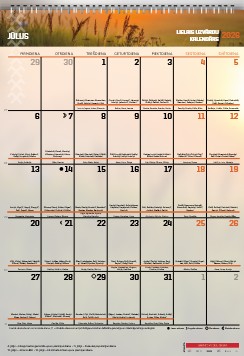 Šis kalendārs ir radīts praktiskai un pārskatāmai ik- dienai. Katra mēneša lapa ir sadalīta lielās, ērtās rūtīs bez liekiem attēliem – tikai vieta, kur rakstīt!